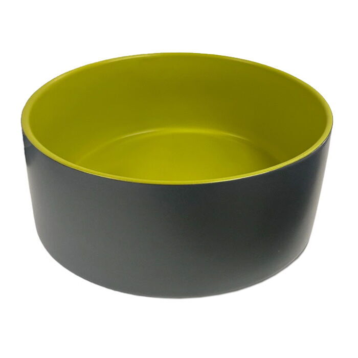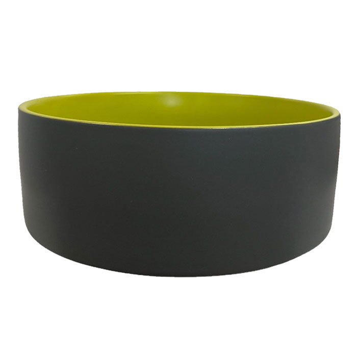 Bobby keramikskål har en smukt design i flot farvekombination med sit mat-koksgrå ydre og klare limegrønne farve indvendig.