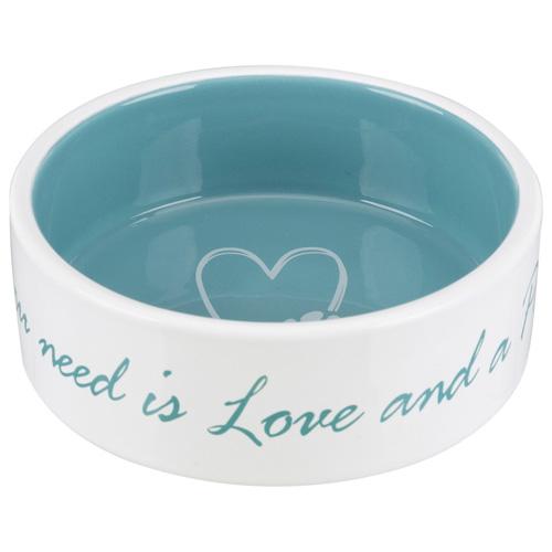 Lyseblå med teksten "All you need is love and a pet"