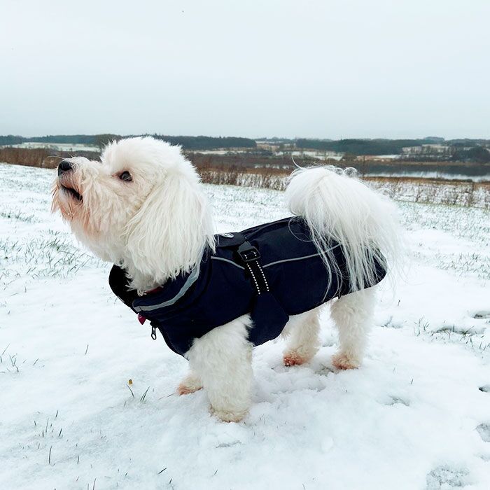 Varm vinterjakke med blød fleece foring der holder hunden varm og tør på kolde dage.