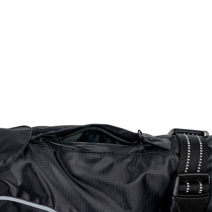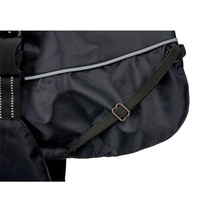 Praktiske refleks detaljer langs ryggen og refleksbånd på halsen. Det giver synlighed og sikkerhed på gåturen i den mørke tid. Hunde jakken har gode detaljer der giver bedre pasform - Den er justerbar omkring maven og har justerbare elastikker ved bagbenene. Yderligere har den en 1/4 lynlås på brystet som gør det nemt at trække dækkenet over hovedet og lyne til bagefter.