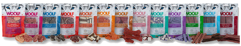 Brug godbidderne fra Woolf til træning med din hund, eller når du synes den skal forkæles!